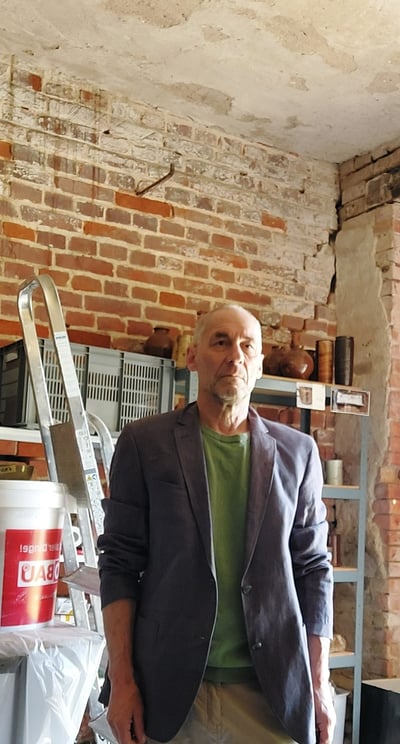 Was ich zu mir sagen kann. Ich habe eine abgeschlossene Scheibentöpferausbildung noch zu Zeiten der DDR bei einem sehr guten Meister bei Potsdam gemacht. Danach hat es mich zu diversen Beschäftigungen und weiteren Ausbildungen getrieben, um nun doch wieder bei diesem schönen ganzheitlichen Handwerk zu landen. Das man hier den ganzen Prozess überschaut und gestaltet ist ein seltenes Privileg. Man erschafft sich so seinen eigenen kleinen Kosmos und versucht anzuknüpfen an alte Praktiken mit neuen Mitteln. Das bedeutet dann auch fast alles selbst machen zu müssen oder zu können. In der Keramikwerkstatt ist das die Tonaufbereitung, das Herstellen von Glasuren, das Drehen und Bauen mit Ton, der gesamte Brennvorgang und etliche andere Nebenarbeiten. Es gibt Rutinen und manchmal erfindet man das Rad neu und das Öffnen des Ofens ist oft ein Fest und eine Belohnung.